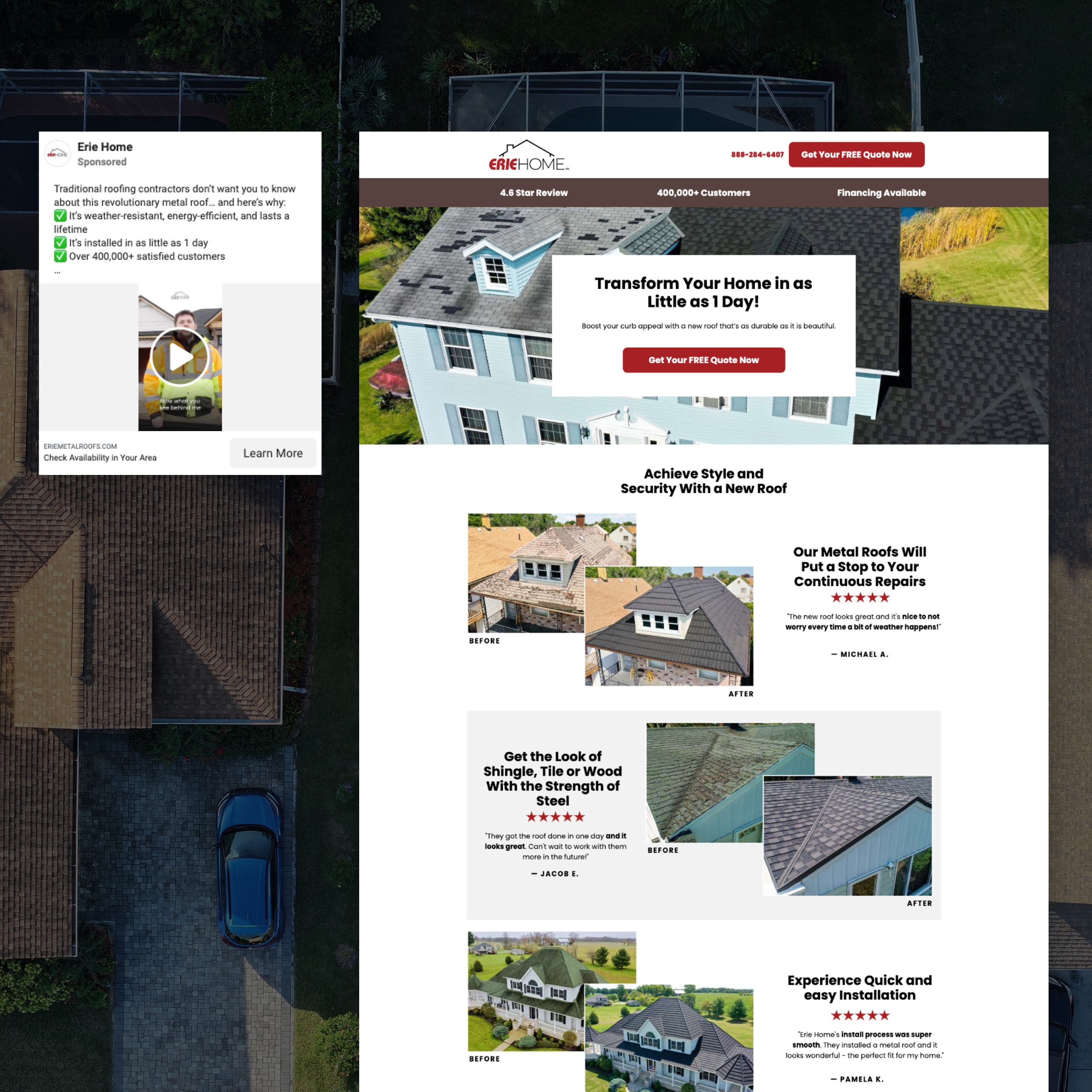 Erie Home is a nationwide roofing company generating high volumes of leads through paid media. But with disconnected pages and inconsistent tracking, there was a major opportunity to tighten the funnel and increase conversion efficiency.